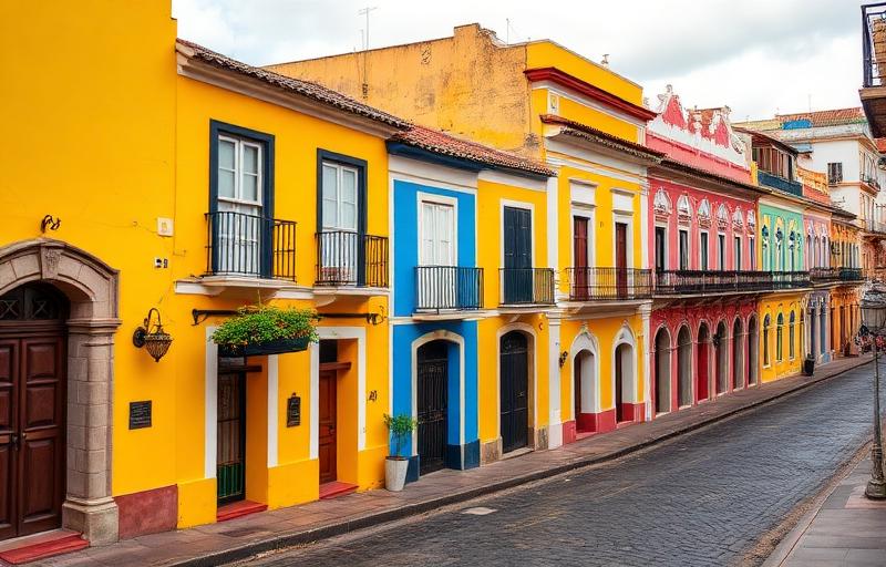 Centro histórico Patrimônio da Humanidade com igrejas barrocas, música ao vivo e arquitetura colonial colorida.